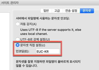 EUC-KR FTP 접속시 한글파일이 올라가지 않거나 깨지는경우