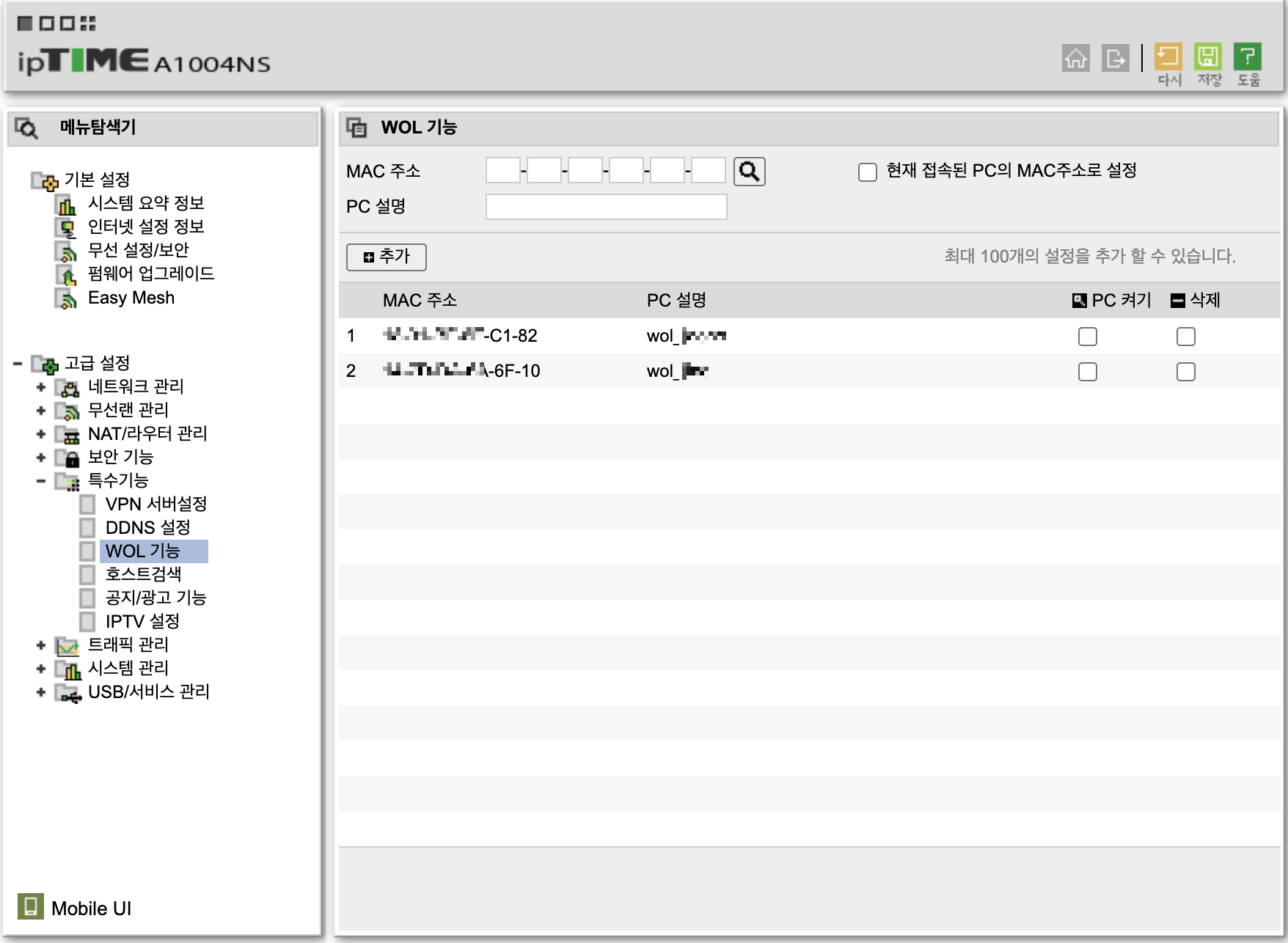 WIFI에서 원격 잠자기 깨우기 기능이 동작합니다.