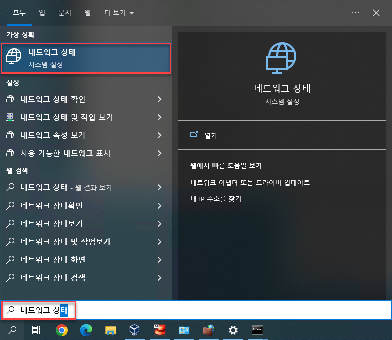 검색에서 "네트워크 상태"를 입력하면