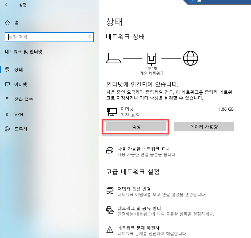 [속성] 버튼을 클릭한다.