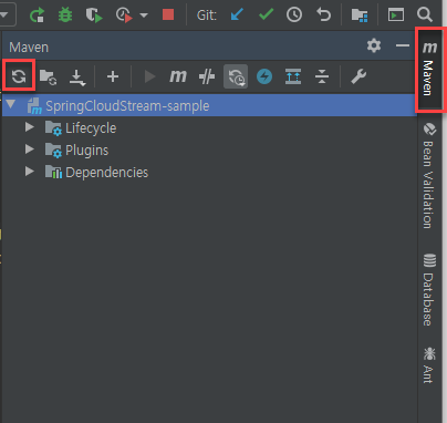 우측 Maven 메뉴에서 Reload 버튼을 클릭하여 프로젝트 메타데이타를 초기화 한다.