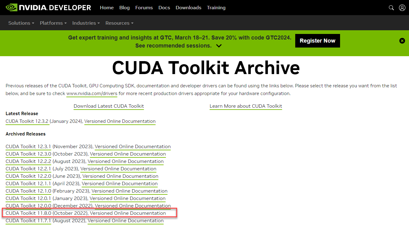 Tensorflow v2.13.0을 목표로 설치하다보니 CUDA v11.8이 채택 되었다.