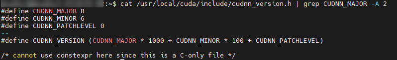 | $ cat /usr/local/cuda/include/cudnn_version.h | grep CUDNN_MAJOR -A 2 |
