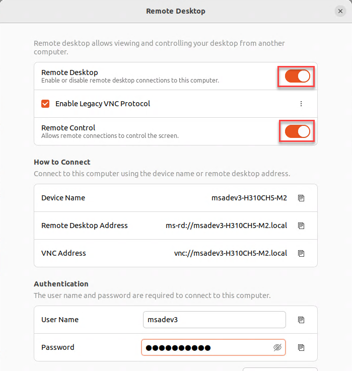 위와 같이 설정하면 즉시 Windows에서 "원격 데스크톱 연결" 및 macOS에서 vnc로 접속이 가능하다.
