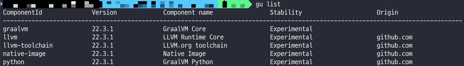 ■ GU(GraalVm Updater) 사용하여 설치된 패키지 보기