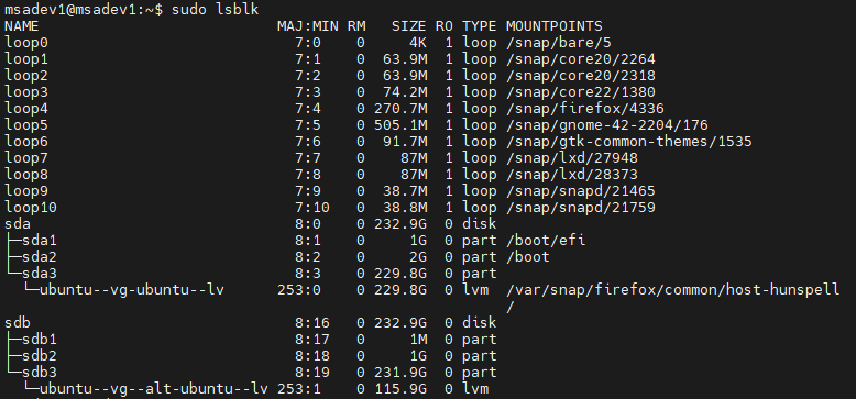 | $ sudo lsblk |