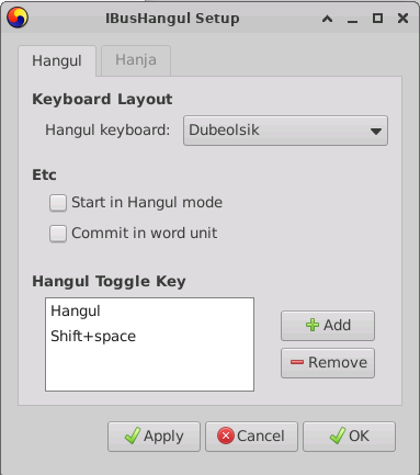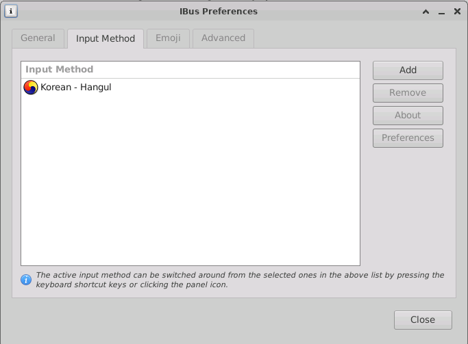 터미널에서 ibus-setup 실행