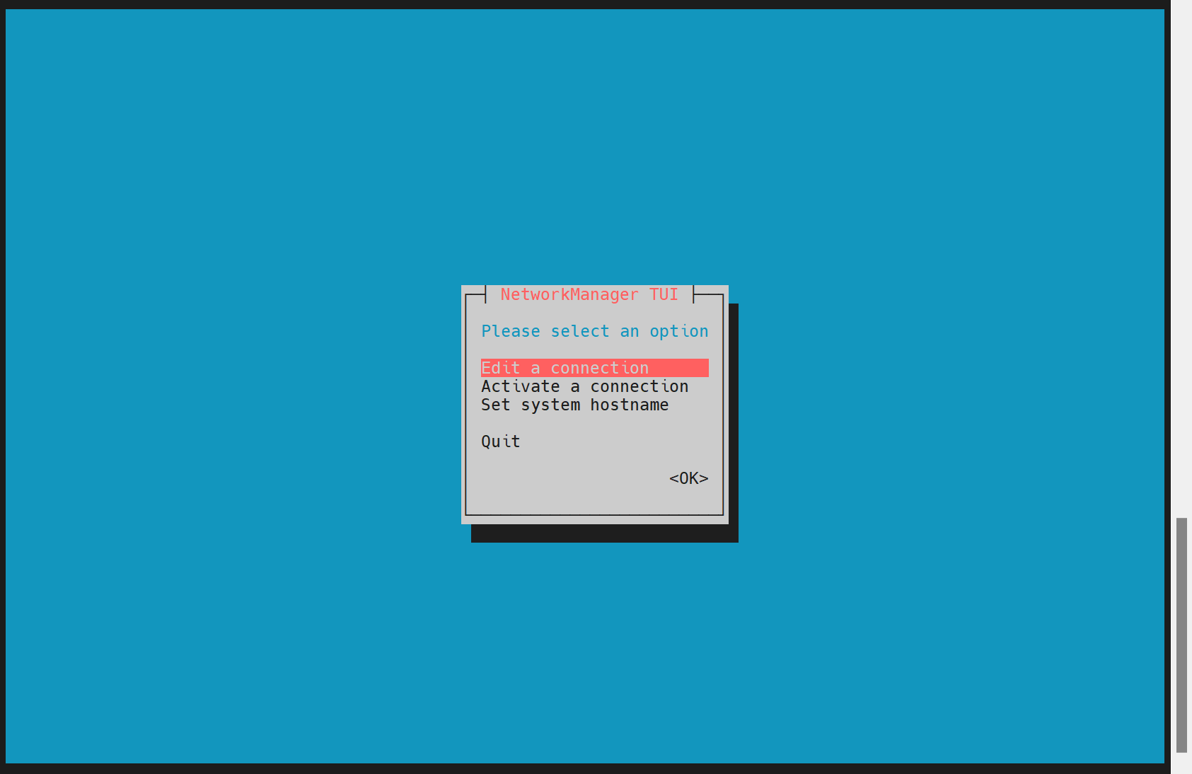 nmtui는 텍스트 기반 문자를 이용하여 GUI를 제공한다.