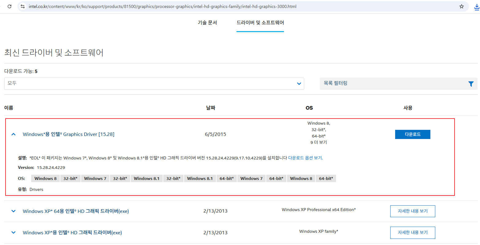 https://www.intel.co.kr/content/www/kr/ko/support/products/81500/graphics/processor-graphics/intel-hd-graphics-family/intel-hd-graphics-3000.html